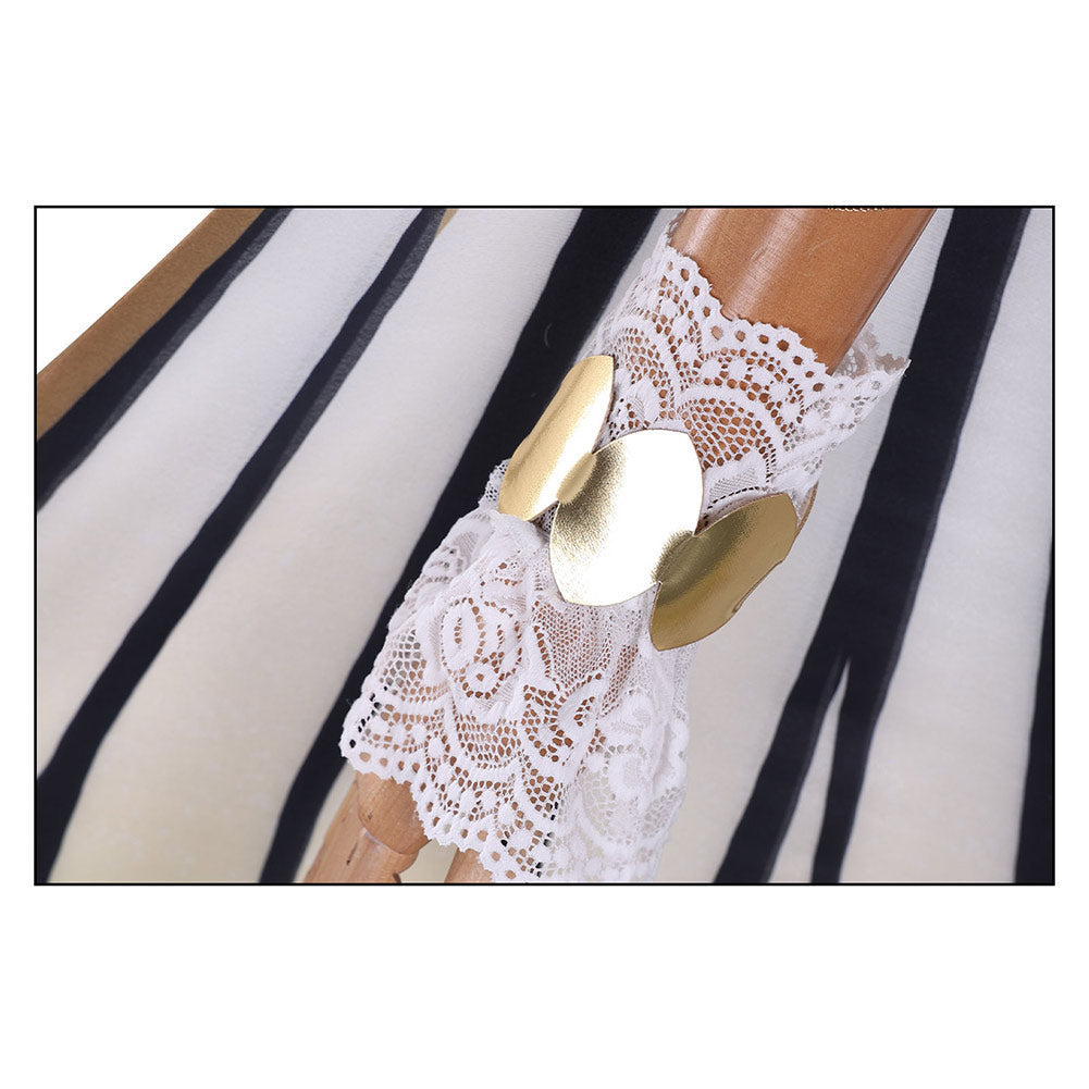 Accessoire Inclu: Coiffe, Collier, Bracelets de Bras, Bas, Bracelets, Bretelles de Soutien-Gorge Transparentes, Robe, Manches