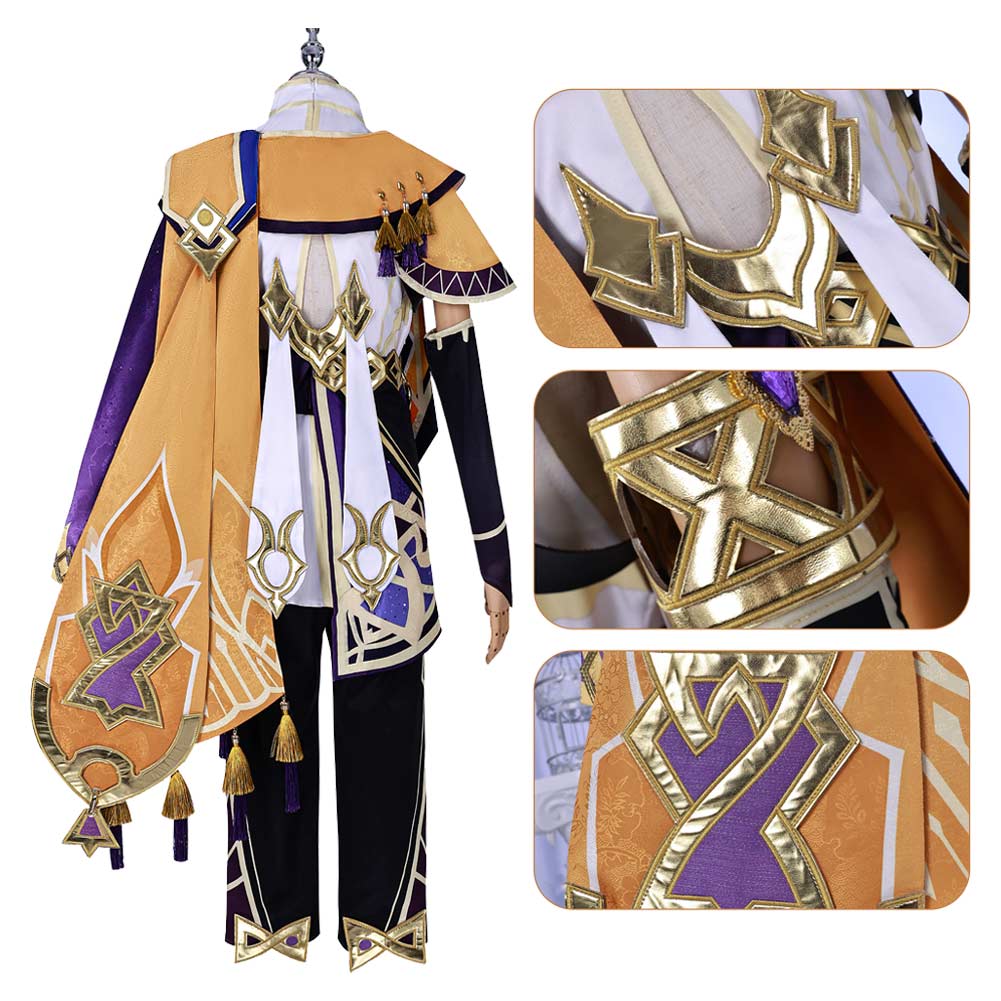 Accessoires Inclus: Haut, Pantalon, Ceinture, Décoration Dos, Décoration Bras, Cape, Gants, Accessoire Cheveux, Clip Oreilles, Décoration Poitrine, Oeil de Dieu, Décoration Jambes