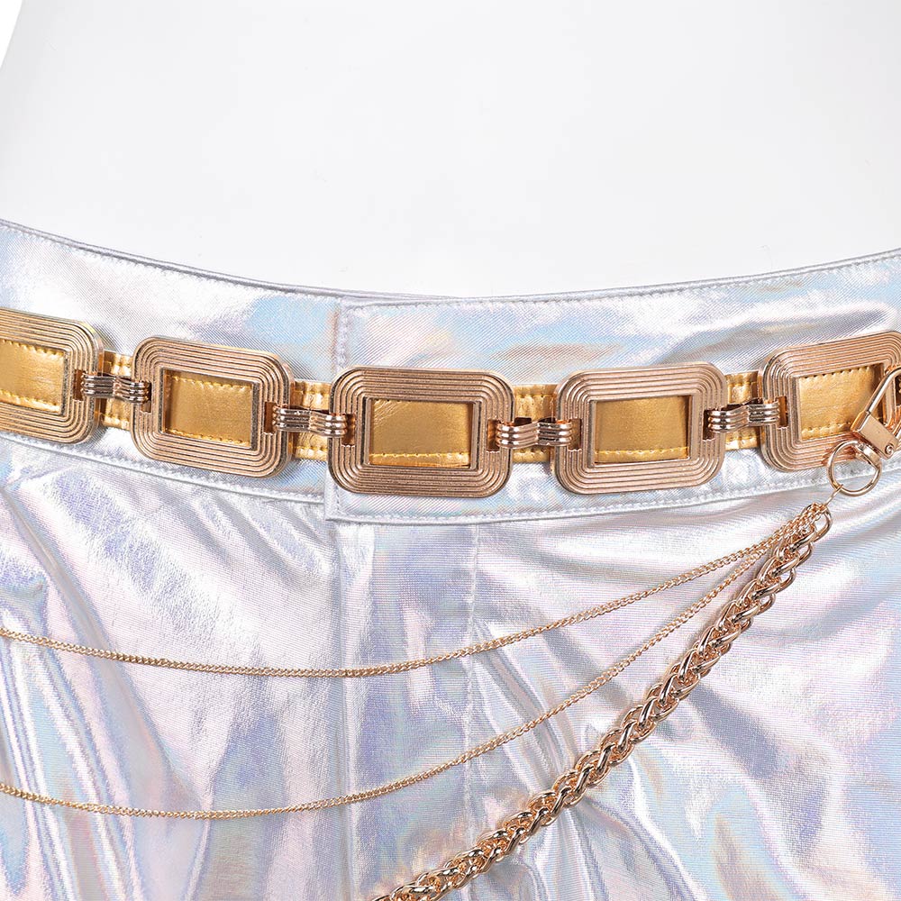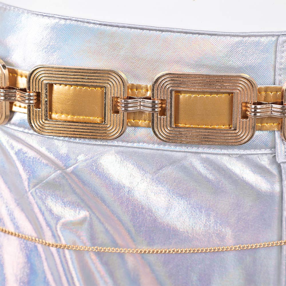 Matière: Soie Glacée Elastique, Elasthanne Elastique, Cuir Doré, Cuir Composite