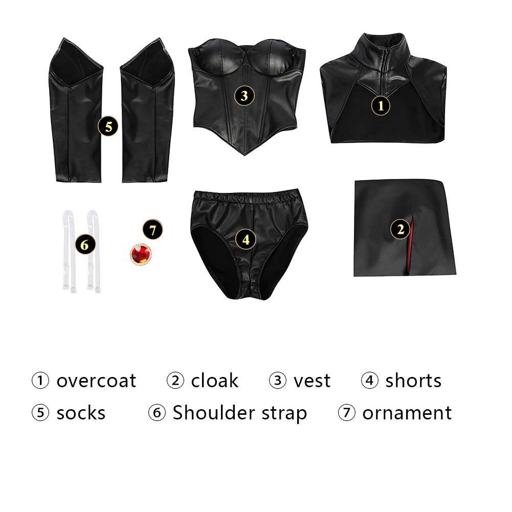 Accessoires Inclus: Veste, Cape, Corset, Short, Chaussettes, Bretelles Transparentes, Déco Décolleté